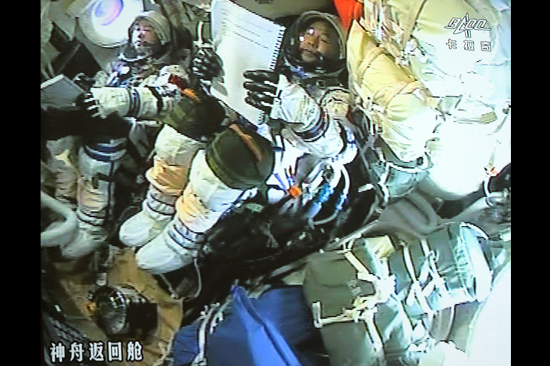 這是2016年11月18日在北京航天飛行控制中心大屏幕拍攝的神舟十一號飛船返回艙內的畫面。2016年11月18日13時59分,神舟十一號飛船返回艙在內蒙古中部預定區域成功著陸,執行飛行任務的航天員景海鵬、陳冬身體狀態良好,天宮二號與神舟十一號載人飛行任務取得圓滿成功。