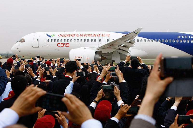 5月5日,中國首款國際主流水準的干線客機C919在上海浦東國際機場首飛成功。