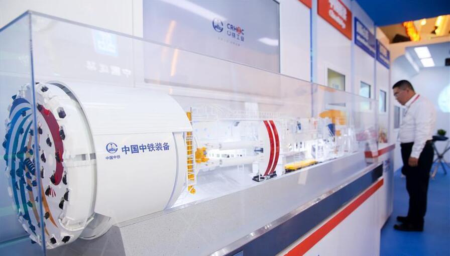 這是中國中鐵股份有限公司在首屆品博會上展出的硬巖掘進機“彩云號”模型(5月10日攝)。新華社記者丁汀攝