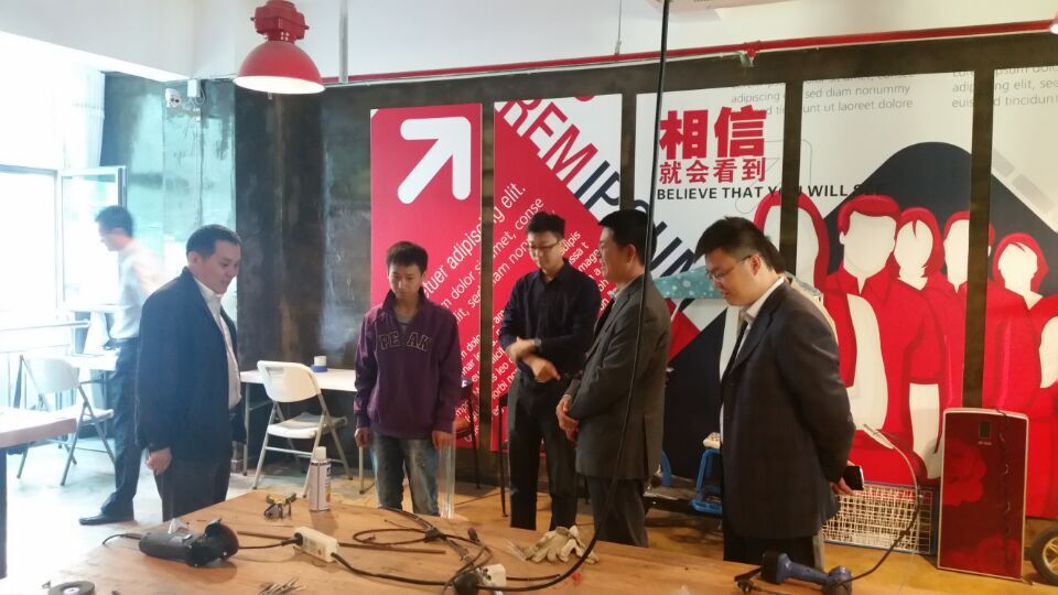 2015年10月16日上午,河北商務廳副廳長董志方到邯鄲高科園區考察,在經理王江濤的陪同下,參觀了園區。在DCT創客空間,董志方興致勃勃地和創客們就創客空間的創業模式交換了意見,對創客空間的創業模式贊賞有加,饒有興致地詢問創客的淵源和前景,就創客現狀,交換了意見。鼓勵創客們,勇于創新,勇于挑戰常規。并深有感觸地說,創客空間,雖是小空間,但,是大舞臺,在這里,創客們將大有可為。