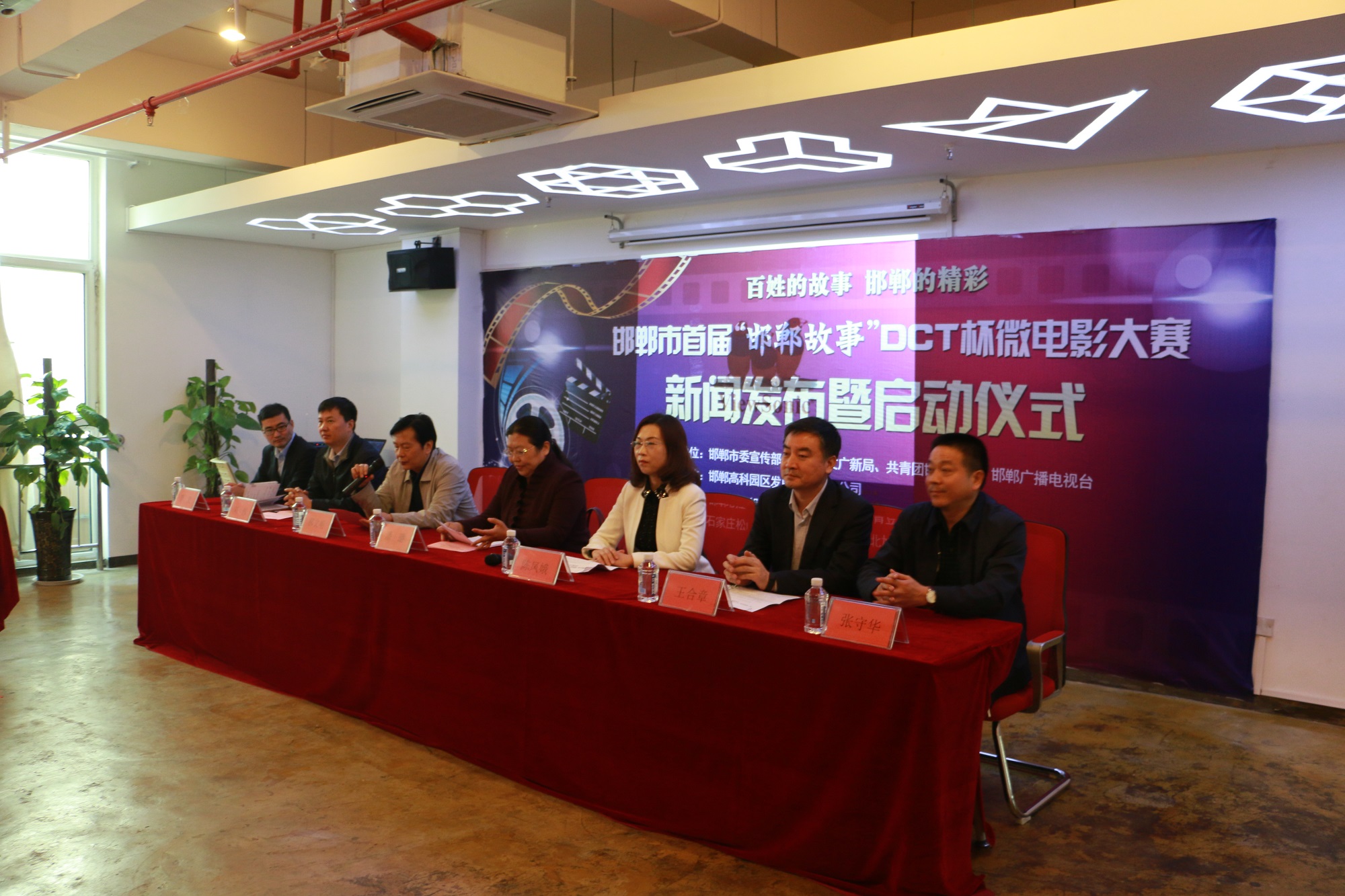 由邯鄲市委宣傳部、邯鄲市文廣新局、共青團邯鄲市委、邯鄲廣播電視臺主辦,邯鄲高科園區(qū)發(fā)展股份有限公司承辦,邯鄲創(chuàng)業(yè)投資集團有限公司、河北青豆文化傳媒公司、石家莊松山文化傳媒有限公司、河北旭影文化傳播有限公司協(xié)辦的邯鄲市首屆“邯鄲故事”DCT杯微電影大賽新聞發(fā)布暨啟動儀式,于2016年3月 17日上午在邯鄲高科DCT創(chuàng)客空間會議室圓滿舉行。